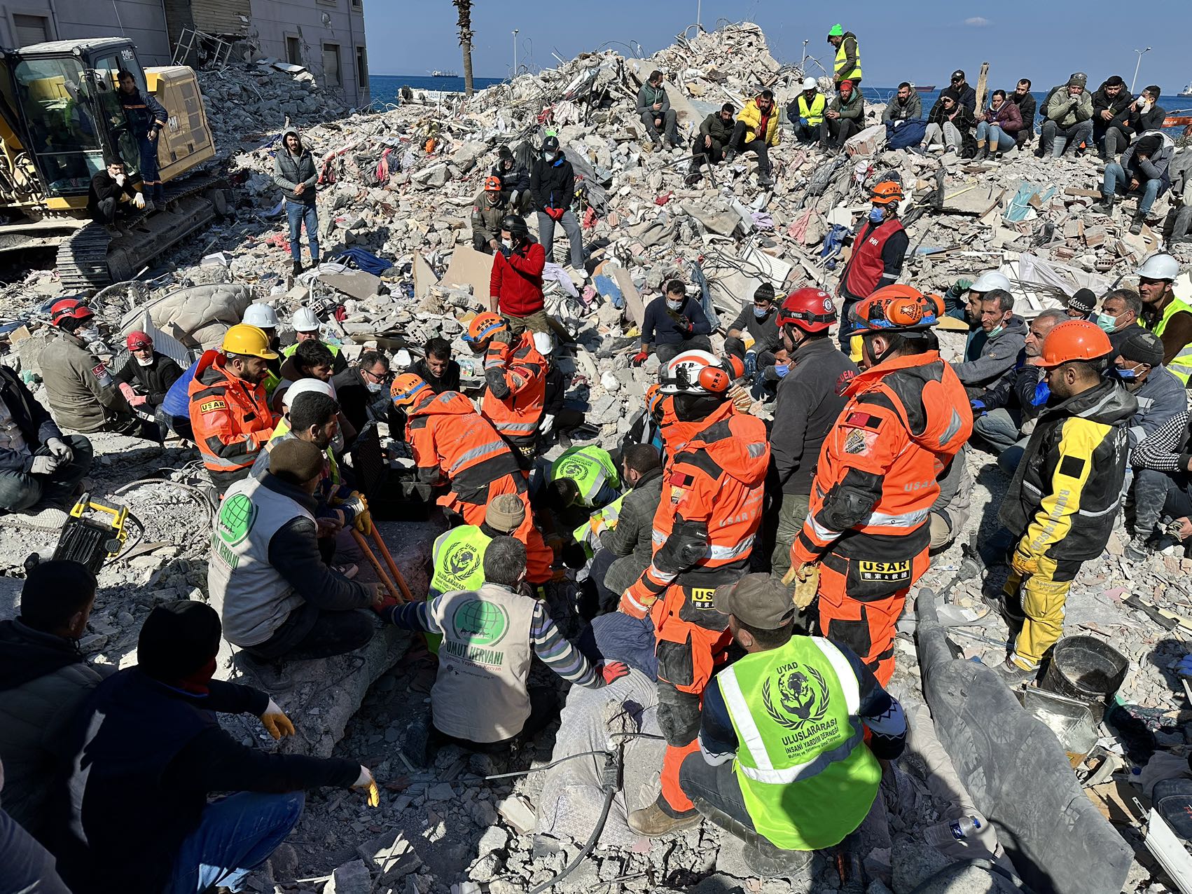 2月11日,土耳其当地时间9时许,公羊救援队接到来自伊斯肯德伦市的求救电线日凌晨,在坍塌的废墟中听到有人发出声音,救援地点就在附近。所有队员集合!五分钟后出发!